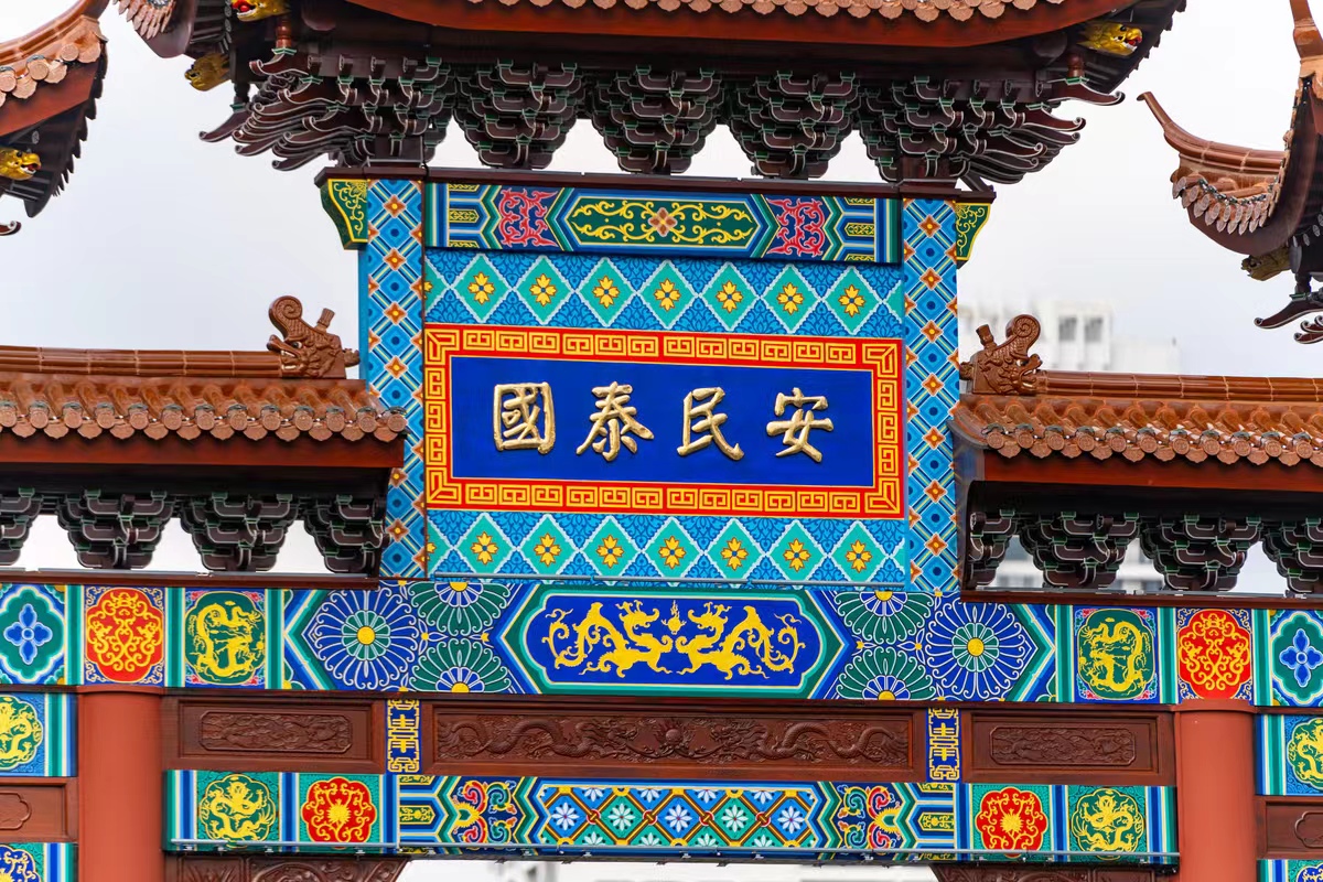 修繕后的城隍廟牌坊浮雕精工細(xì)琢,斗拱層疊,檐角飛翹,彩繪圖案色彩亮麗、刻畫精美,四根朱紅色的立柱明亮可鑒、氣勢恢弘,匾額上的“國泰民安”四個(gè)字寄托了對(duì)這座城市的美好祝愿。