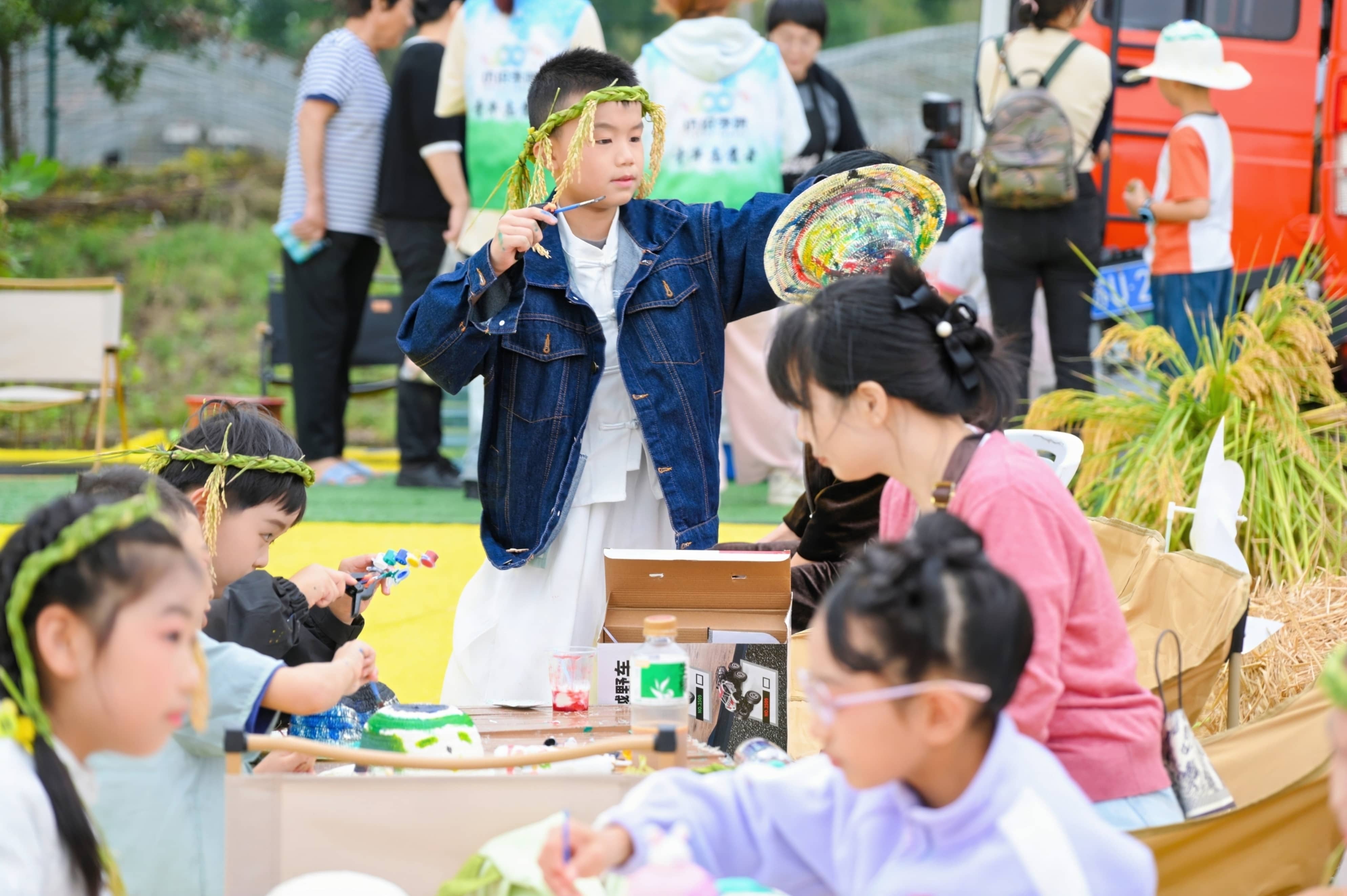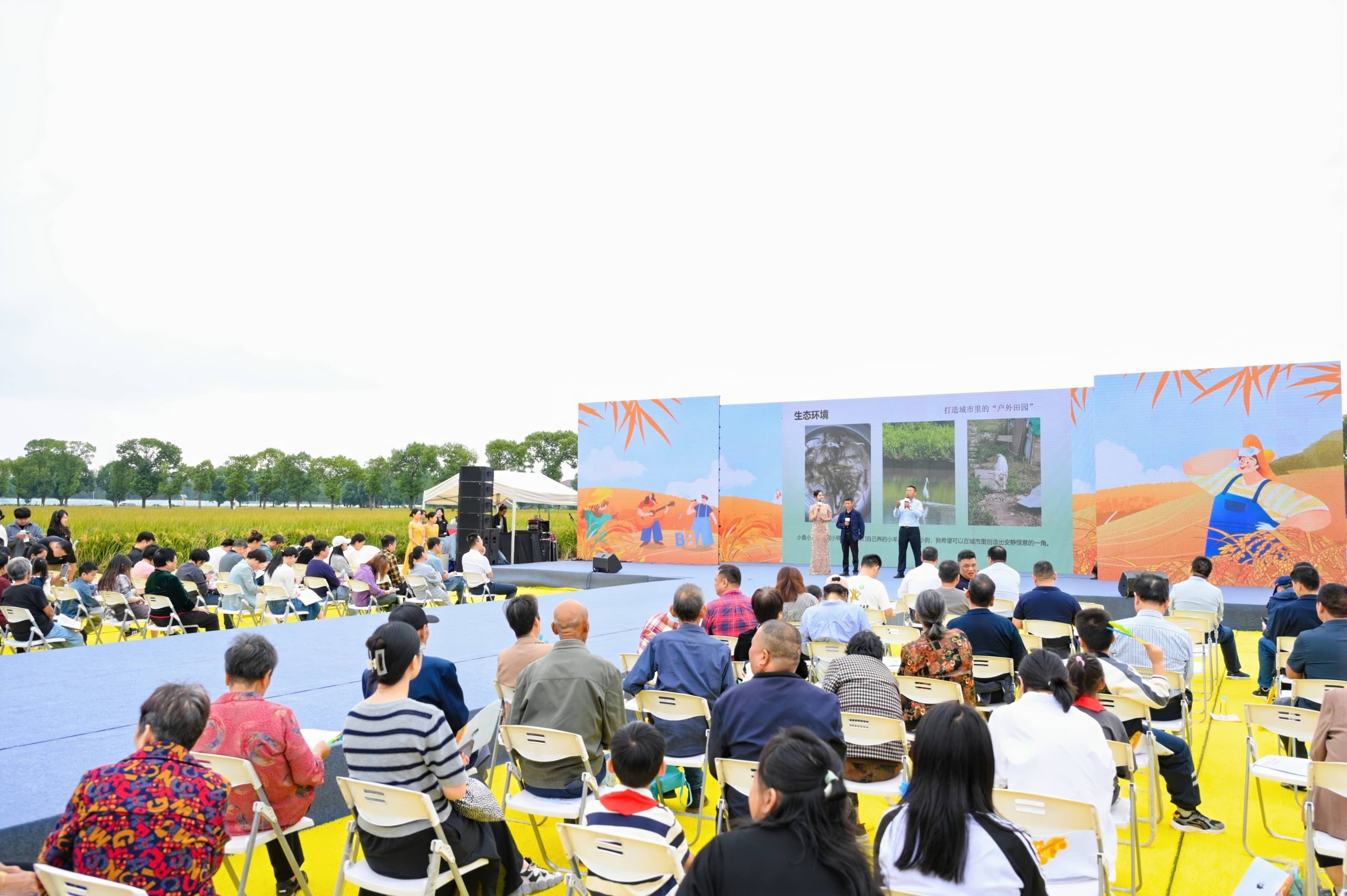 正值豐收的季節(jié),現(xiàn)場(chǎng)悠揚(yáng)的旋律和金色的稻田交織在一起,愜意舒適。田間非遺手作、親子農(nóng)耕體驗(yàn)、稻田共富集市、稻田藝術(shù)展覽等各類活動(dòng)精彩紛呈,吸引了眾多游客前來(lái)打卡,激發(fā)鄉(xiāng)村振興新活力。