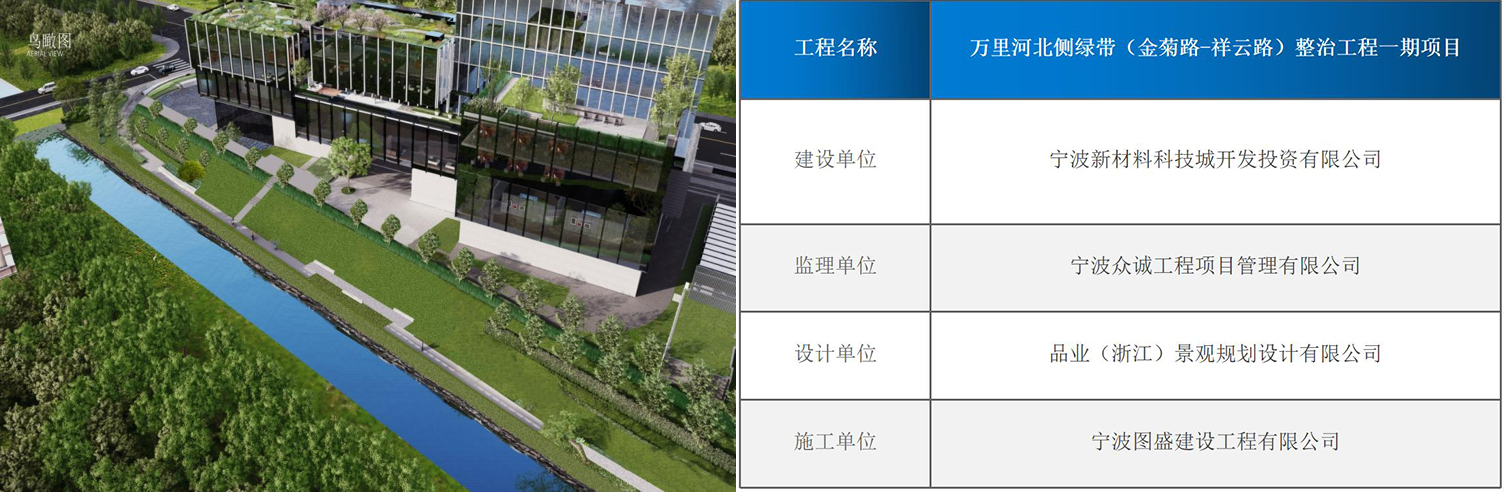 工程位于寧波國家高新區(qū),主要建設內(nèi)容包括對萬里河北側(cè)沿河步道、綠化、照明、監(jiān)控及河坎的建設,面積約為2488平方米,長度約為175米,總投資約為200萬元。